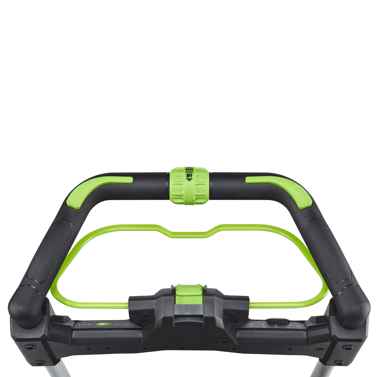 EGO LM2135E-SP grasmaaier. Deze accu grasmaaier heeft een grote maaibreedte van 52 cm. Ideaal voor het maaien van grote gazons tot een oppervlakte van 1.000 m2. Deze gazonmaaier is zelfrijdend waardoor zelf heuvelachtig terrein geen probleem is voor deze maaier. Deze gazonmaaier is voorzien van automatisch variabele maaisnelheid en heeft een extra grote opvanbak van 70 liter. Het bijzondere van deze maaier zit voornamelijk in het maaidek waar deze machine is voorzien van dubbele messen. Door de extra werveling in het maaidek heeft deze gazonmaaier een uitstekend vangresultaat. Optioneel kan de LM2135E-SP worden voorzien van mulchmessen. Deze maaier wordt geleverd inclusief een 7,5 Ah accu en snellader. Op deze accu maait u tot 1000 m2. Met onze grootste accu, de 10 Ah maait deze maaier zelfs tot 1333 m2 op een enkele lading.