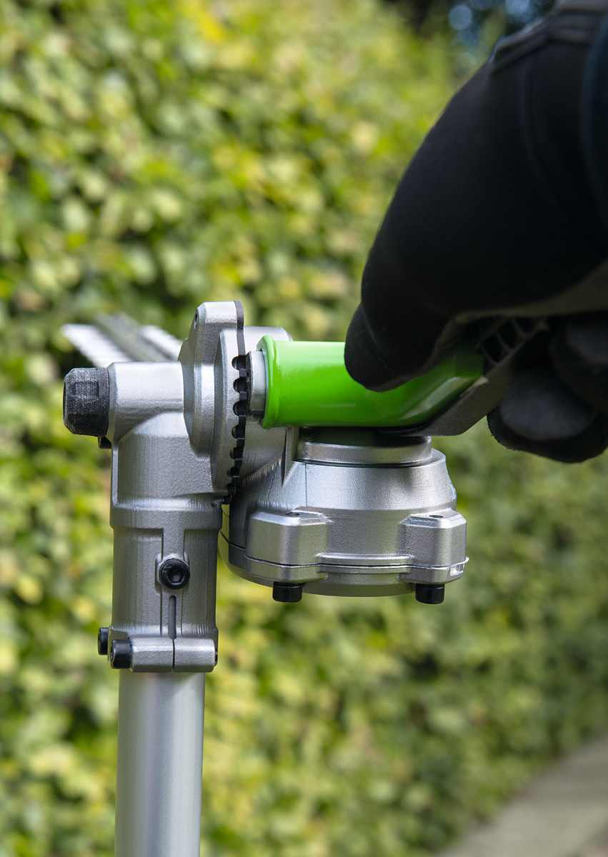 Ontdek de kracht van EGO en zet de schaar in uw heg. Met het heggenschaaropzetstuk voor de EGO Power+ multitool geniet u van de vrijheid van snoerloos werken en met de 12 verschillende zaaghoeken behaalt u gegarandeerd de look die u wilt. Zijn uw heggen niet zo hoog, dan is er ook een kleinere versie van dit opzetstuk (HTA2000S) die 120 cm lang is (40 cm korter dan dit opzetstuk) met dezelfde zaagbladlengte en 9 verstelbare zaaghoeken.